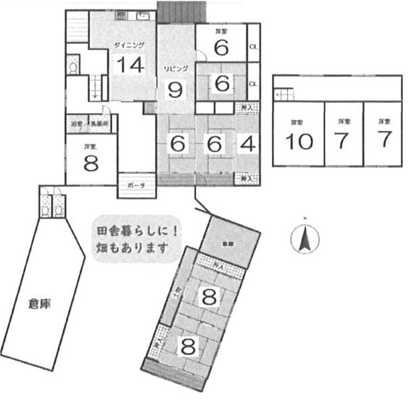☆土地面積約254坪 ☆11LDK ☆トイレ3ヶ所 ☆駐車3、4台可能 ☆前道4m ☆町内の無料バスが巡回しています ☆工業団地へ車で5分