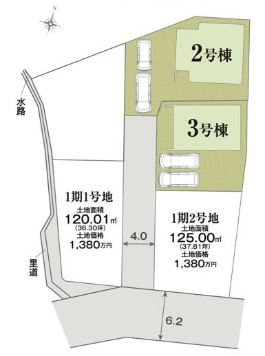 | 接道方向1 | 西4m | 接道方向2 | |