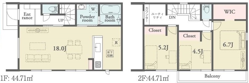 | 1F | 44.71㎡ | 2F | 44.71㎡ |