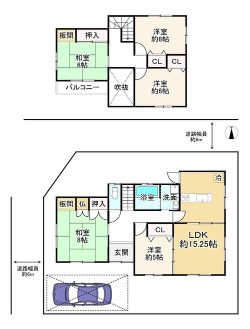 | 接道方向1 | 北6.0m | 接道方向2 | 西6.0m |