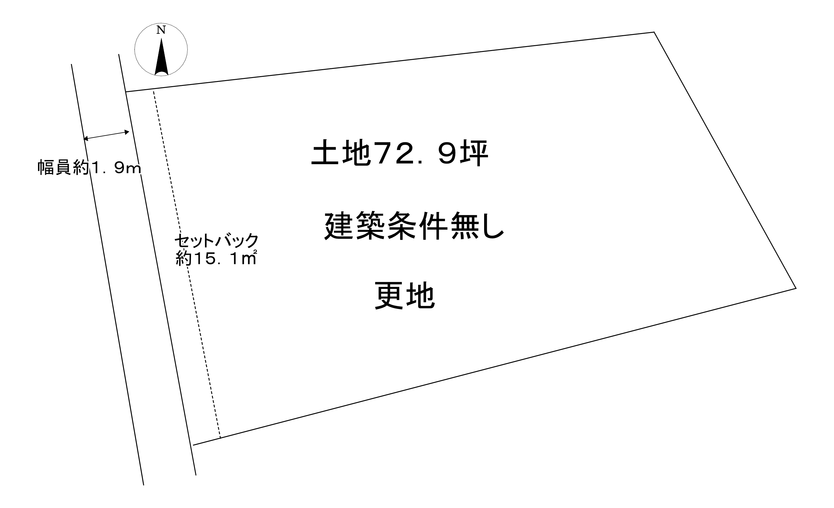 | 接道方向1 | 西1.9m | 接道方向2 | |